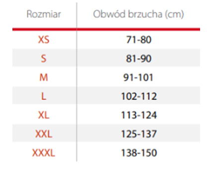 Pas brzuszny stosowany jest w celu wsparcia mięśni brzusznych.
