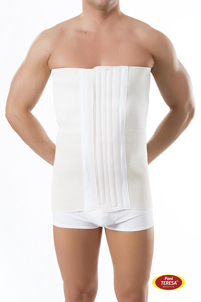 - od zewnątrz wspomaga mięśnie brzucha i zapobiega opuszczaniu trzewi jamy brzusznej